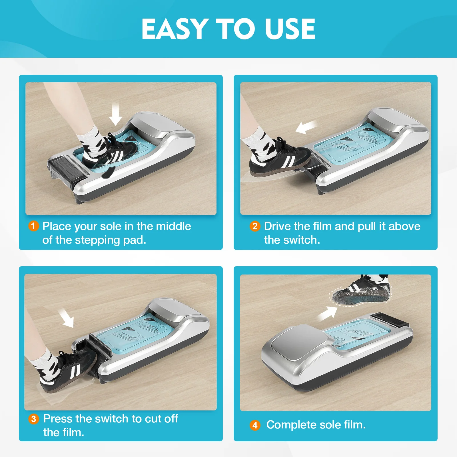 Easy to Use: With just a gentle step, the shoe film can smoothly cover the sole. You don't need to bend down during the whole process, making it easy for people of all ages to use.