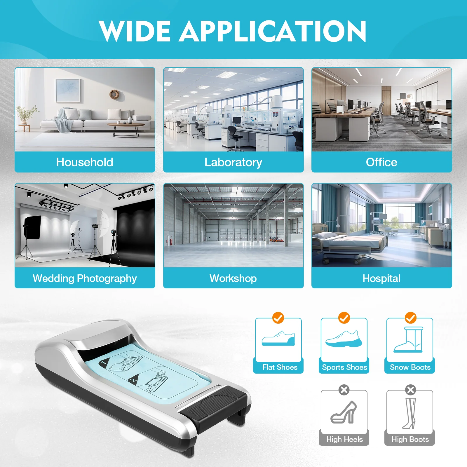 Application: It is suitable for household, laboratory, kitchen, office, wedding photography, dust-free workshop, sales department, hospital and other scenes. It can fit various types of shoes, such as flat shoes, sports shoes, and snow boots (size up to men's size 12).